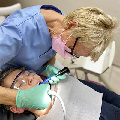Unser routinemäßiger Check-up im Rahmen von Vorsorgebehandlungen schafft die Sicherheit, dass eine Parodontitis frühzeitig erkannt und somit zielgerichtet und weniger aufwendig therapiert werden kann. Sollte eine Parodontitis-Therapie notwendig werden, wird nach einer Befundaufnahme, bei der Zahnfleischtaschentiefen, sowie gegebenenfalls vorliegende Zahnlockerungen erfasst werden, ein Behandlungsplan festgelegt. Dieser beinhaltet neben einer Reinigung der Zahnfleischtaschen unter Anästhesie immer eine Spülung mit desinfizierenden und antibakteriellen Lösungen sowie einer Glättung der Wurzeloberflächen. Anschließend wir ein individuelles Prophylaxe- Recall- Programm für sie ausgearbeitet, um die Zahn- und Zahnhalteapparatgesundheit effektiv zu erhalten.